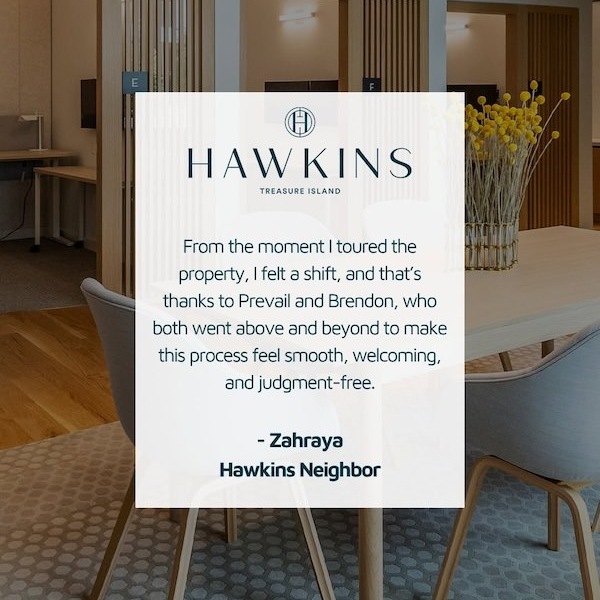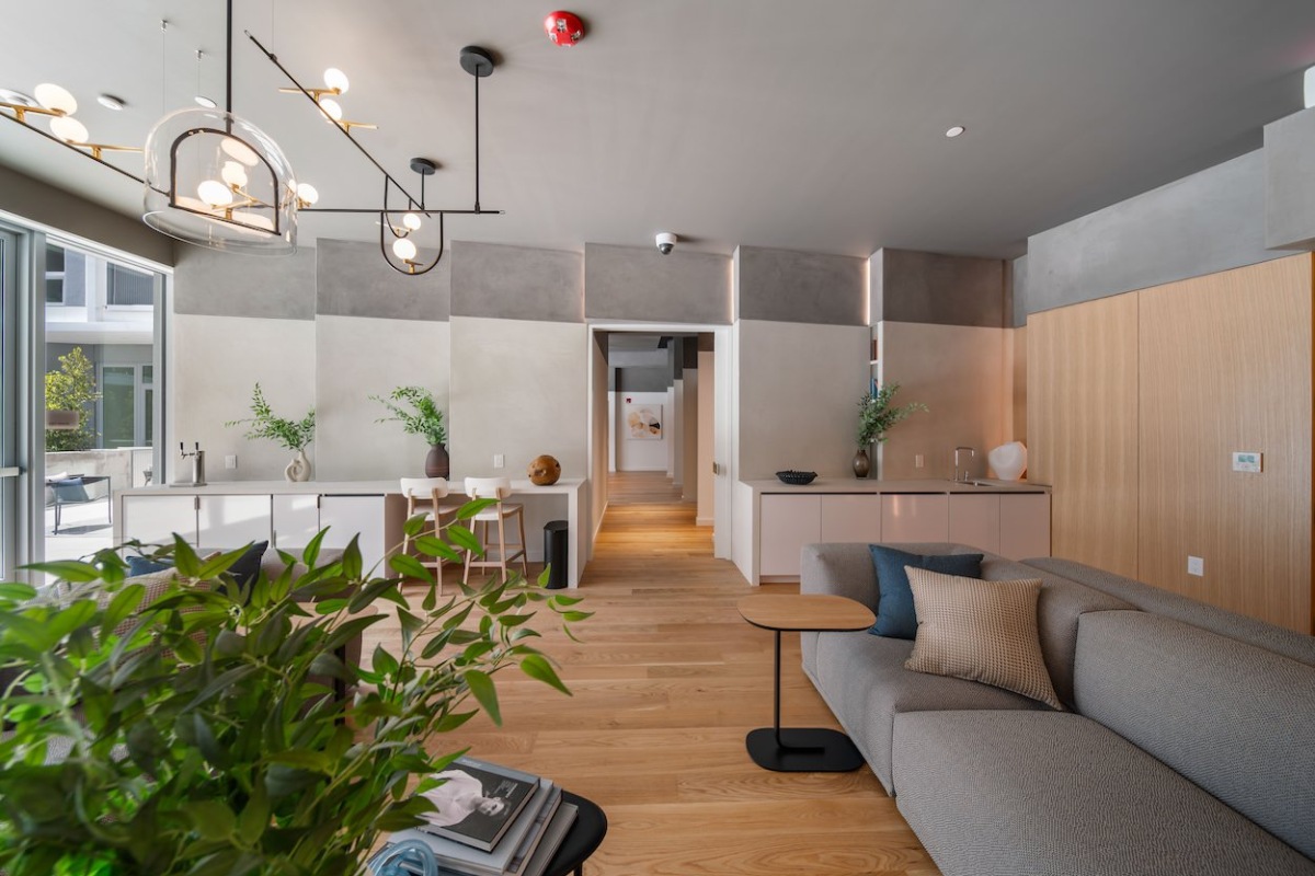 Designed around an expansive courtyard, Hawkins welcomes residents with a contemporary facade that transforms in appearance as light shifts throughout each day. An architectural expression that interplays light and shadow as if they were among the building’s structural elements, Hawkins fluently integrates with its direct connection to the island’s waterfront plaza.